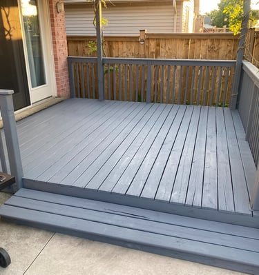 Here's a project we blue out of the water. We masked the bricks, windows and anything else at risk of overspray. Degreased and sanded the surfaces, then transformed the old white surfaces into a clean modern black. We did this in just 3 days