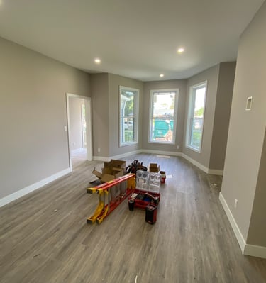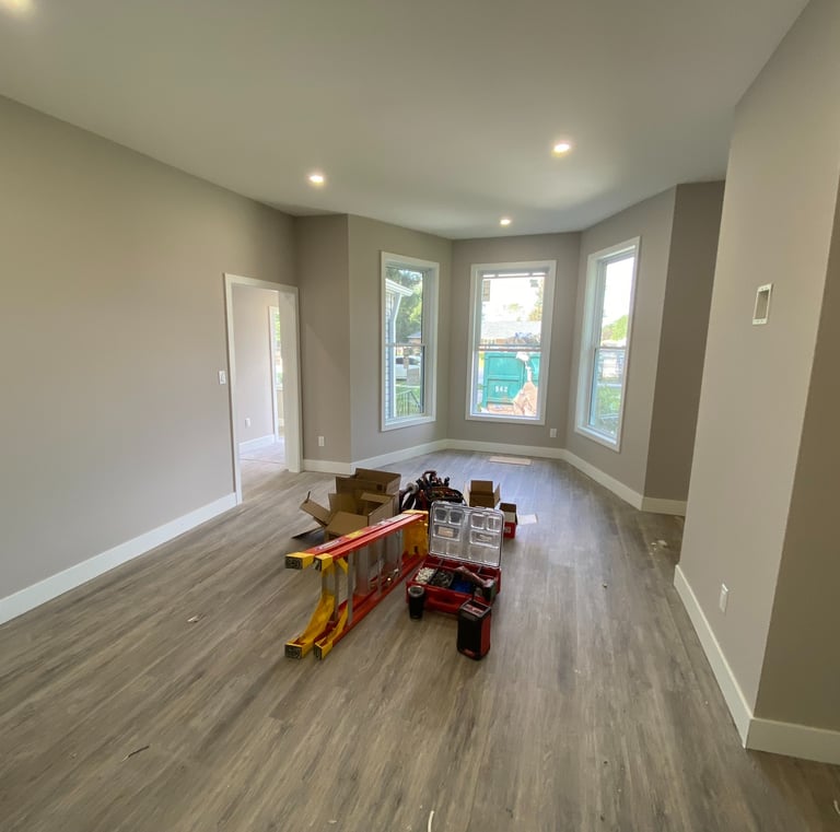 This house was covered in tar from years of smoking. We oil primed everything, and then completed a full repaint of the ceiling, walls, trim and doors. Transforming this place into a clean livable space