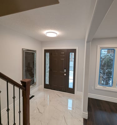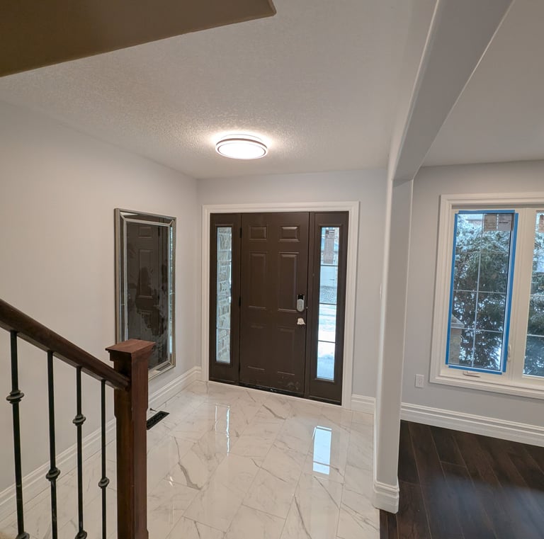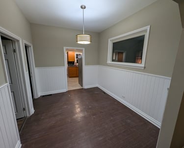 This house was covered in tar from years of smoking. We oil primed everything, and then completed a full repaint of the ceiling, walls, trim and doors. Transforming this place into a clean livable space