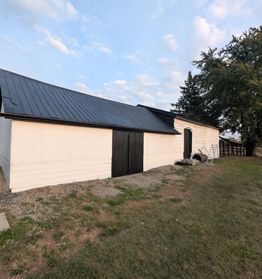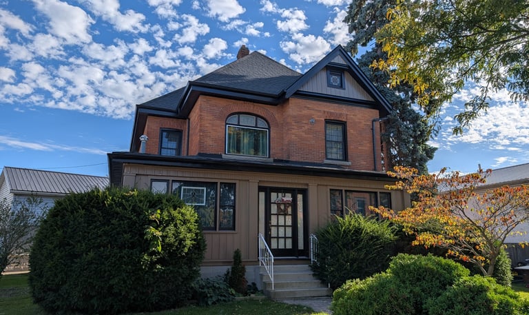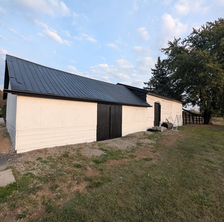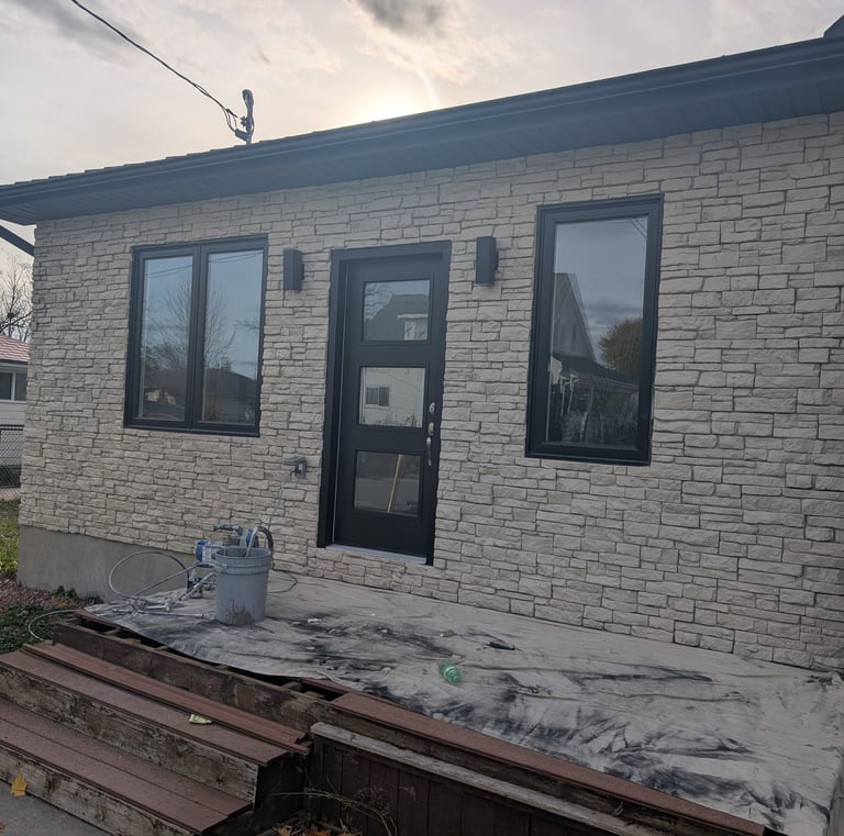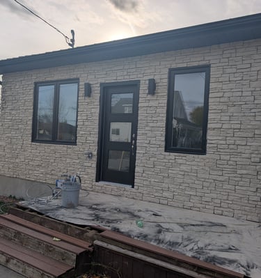 Here's a project we blue out of the water. We masked the bricks, windows and anything else at risk of overspray. Degreased and sanded the surfaces, then transformed the old white surfaces into a clean modern black. We did this in just 3 days